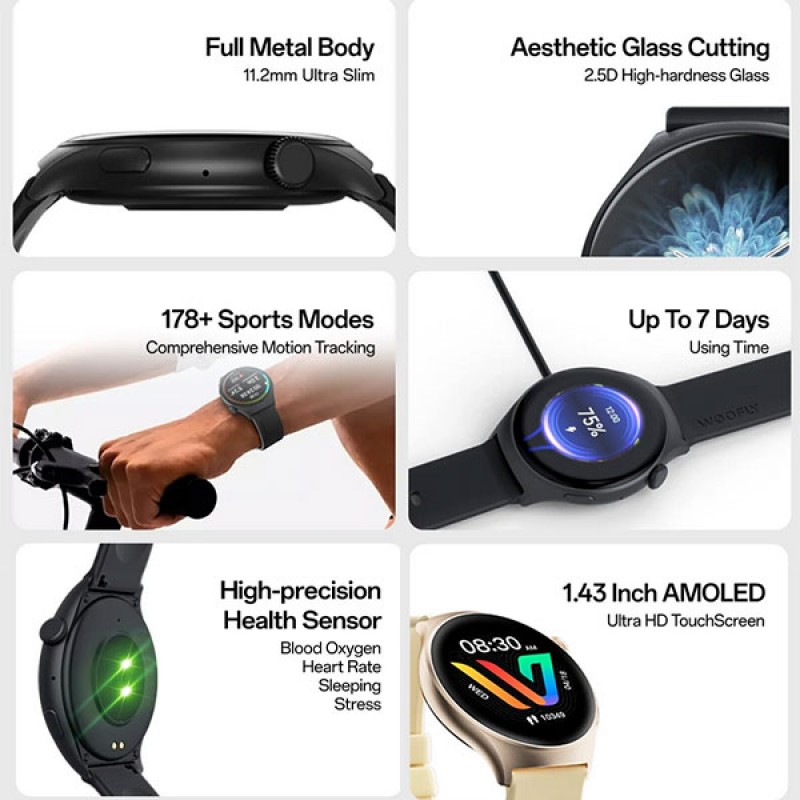 ·         شاشة AMOLED فائقة الوضوح بدقة 466x466 ومعدل تحديث 60Hz مع خاصية العرض الدائم.