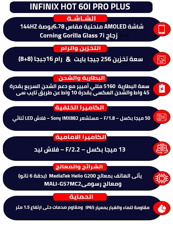 موبايل انفينكس هوت 60 برو بلس ثنائي الشريحه 256 جيجابايت 16 جيجابايت رام 8+8 شاشة 6.78 بوصة