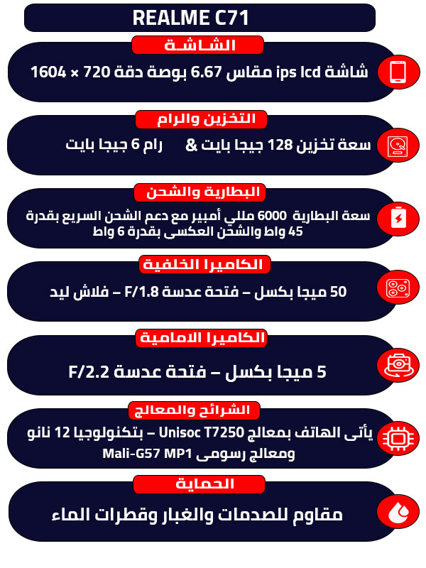 موبايل ريلمي c71 ثنائي الشريحة 128 جيجابايت 6 جيجابايت رام 6.67
