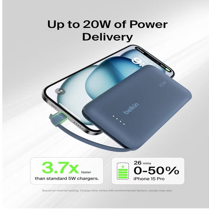 باور بانك بيلكن منفذين تايب سى تقنية PD 20 واط قدرة 10000 مللى امبير موديل bpb02aha