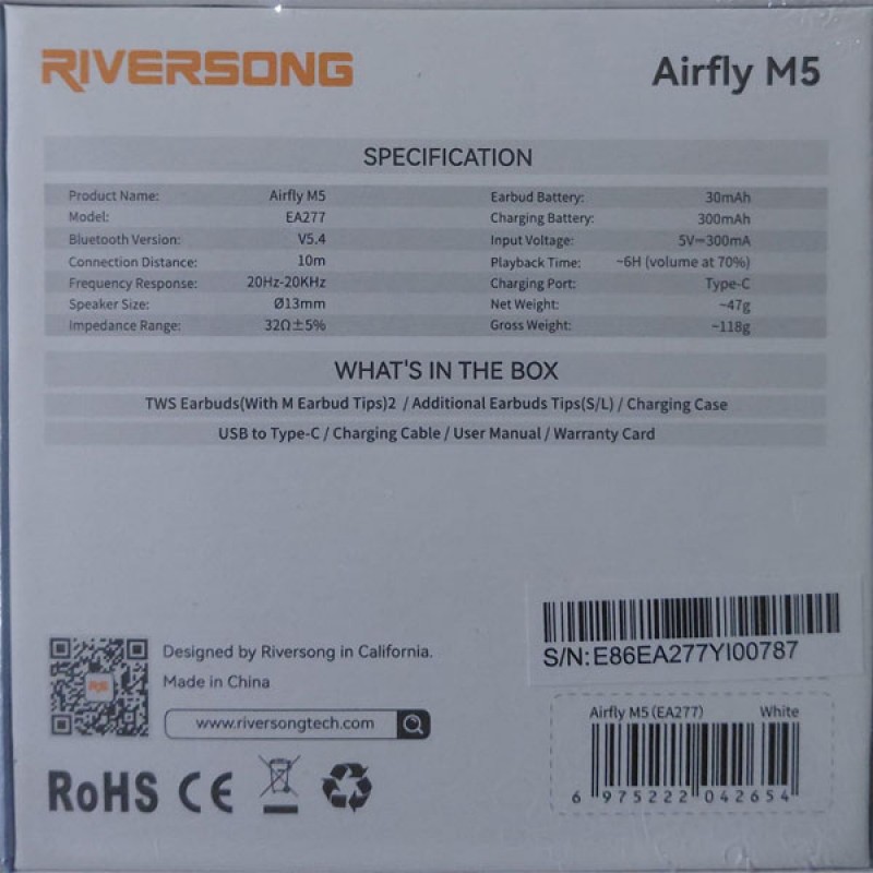 سماعة بلوتوث ريفرسونج إيرفلاي M5 ENC EA277