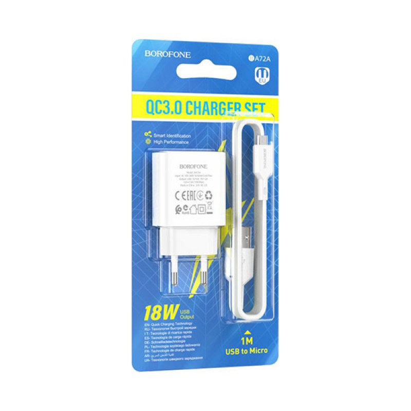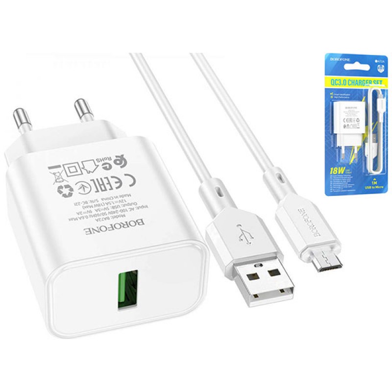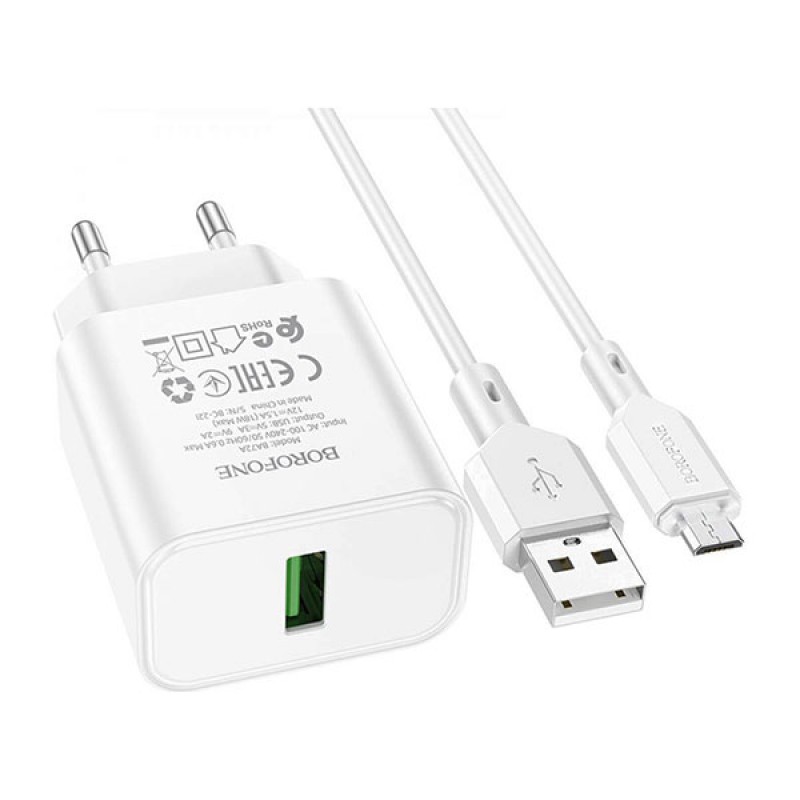 شاحن بوروفون يو اس بى ميكرو 18 واط شحن سريع موديل ba72a