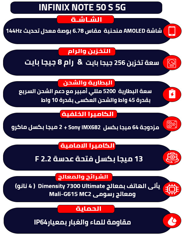 موبايل انفنيكس نوت 50s بلس 5g 256 جيجا بايت 8 جيجا رام شاشة 6.78 بوصة