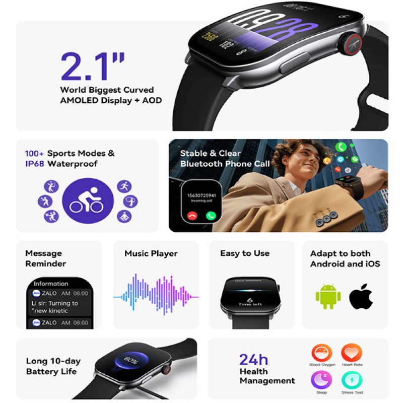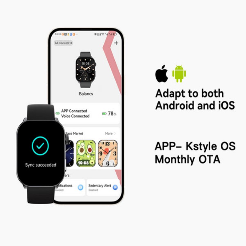 - توافق مع أنظمة Android و iOS مع وظائف متعددة لتتبع الصحة والنشاط.