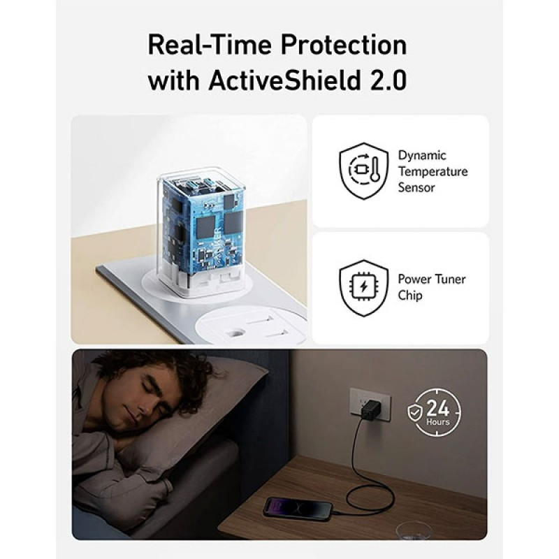 · حجم مضغوط: تقريبًا نفس حجم الشاحن الأصلي 20W، لكن بطاقة مضاعفة
