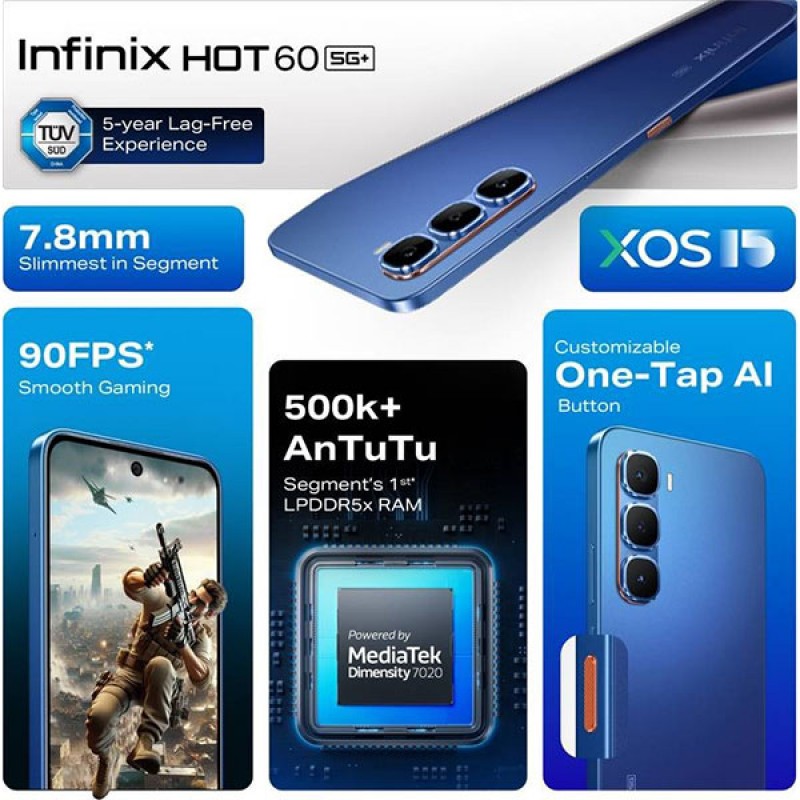 موبايل انفينكس هوت 60 5جي بلاس ثنائي الشريحة سعة 128 جيجابايت رام 12جيجابايت (6+6) شاشه 6.7و هدية ساعة اسمارت انفينكس xw3p