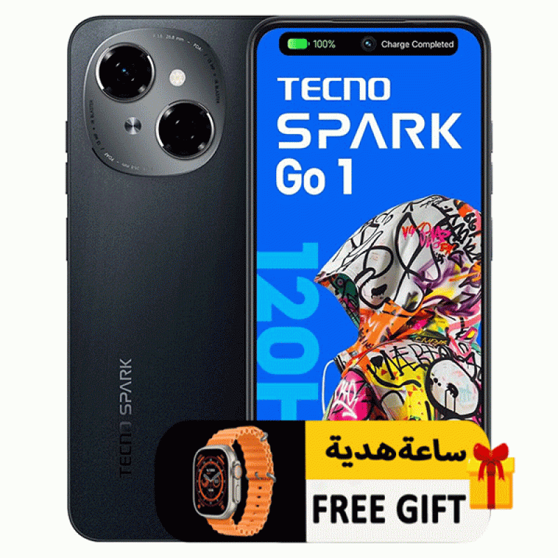 الأداء والمعالج: يعمل Tecno Spark Go 1 بمعالج Unisoc T615 ثماني النواة بتقنية تصنيع 12 نانومتر، مقسم إلى نواتين بتردد 1.8 جيجاهرتز من نوع Cortex-A75، وستة أنوية بتردد 1.6 جيجاهرتز من نوع Cortex-A55. يتوفر الهاتف بخيارات ذاكرة وصول عشوائي (RAM) بسعة 3 أو 4 جيجابايت، وذاكرة تخزين داخلية بسعة 64 أو 128 جيجابايت، مع إمكانية توسيعها عبر بطاقة microSD. يعمل الجهاز بنظام التشغيل Android 14 (إصدار Go) مع واجهة HiOS 14.