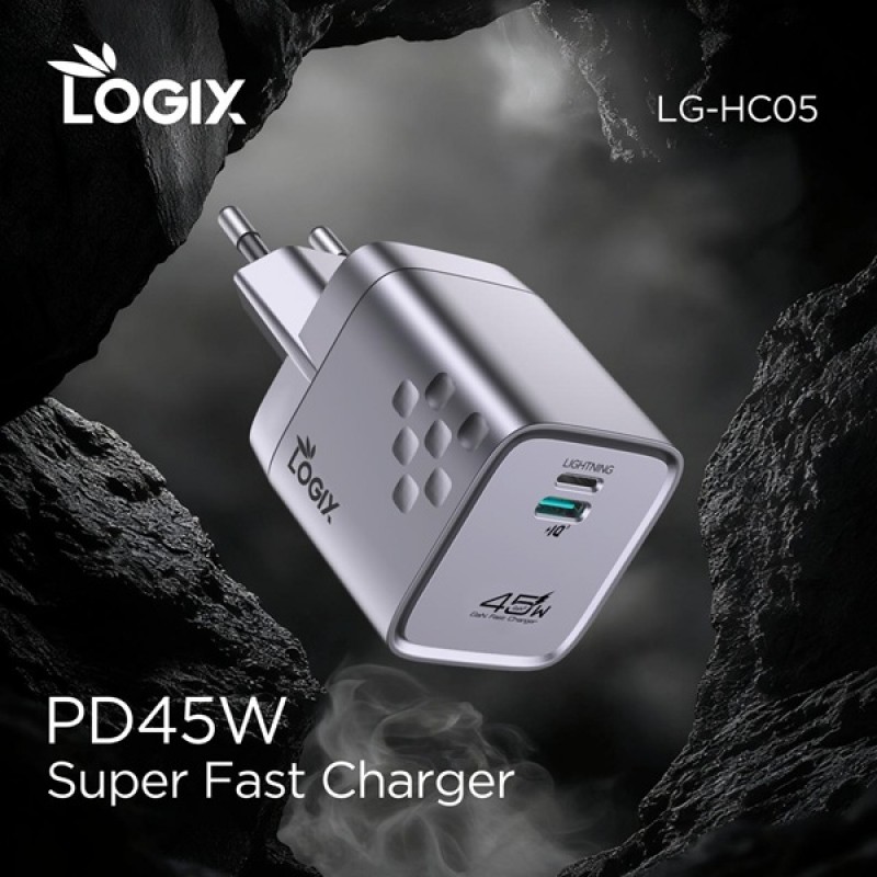 شاحن لوجيكس تايب سي إلى تايب سي شحن فائق السرعة PD بقدرة 45 وات موديل HC05 للاستخدام المنزلي