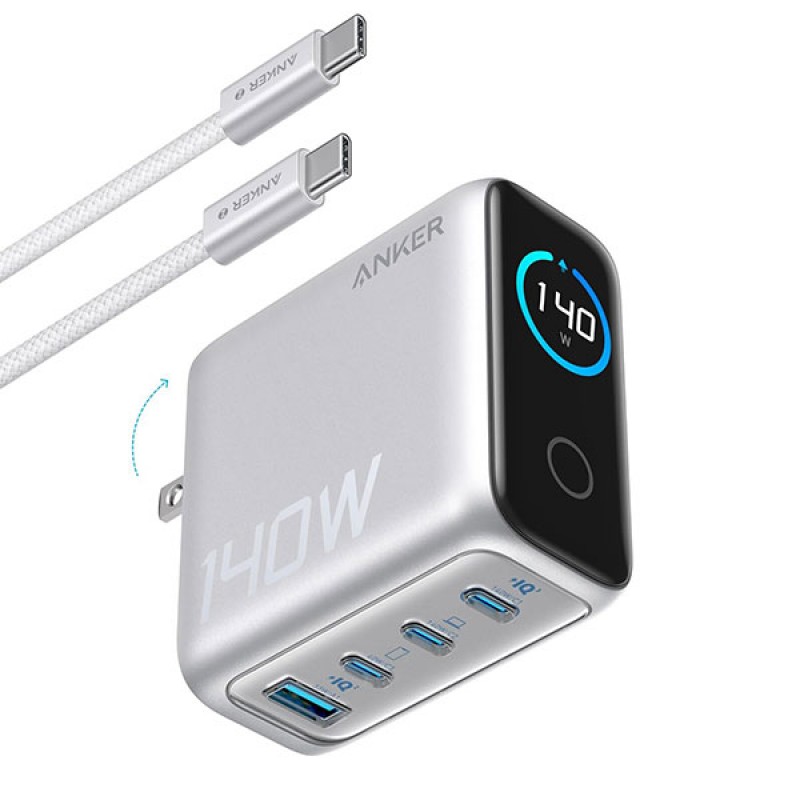 شاحن موبايل منزلى انكر 4 منافذ بتقنية PD3.1شحن سريع مع كابل يو اس بى تايب سى بقدرة 140 واط موديل B2697G41