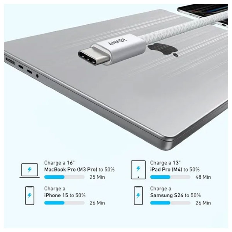 كابل أنكر يو إس بي تايب سي إلى يو إس بي تايب سي شحن سريع 240 واط مضفر 6 أقدام 2 متر موديل A8060H22