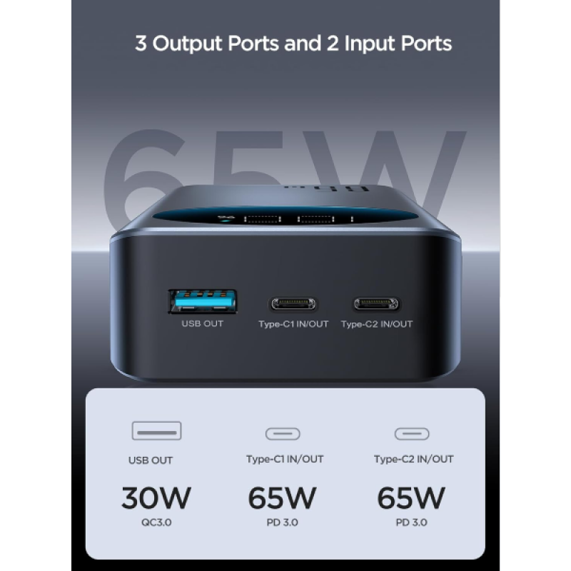 يدعم الشحن السريع للبنك نفسه حتى 65 W