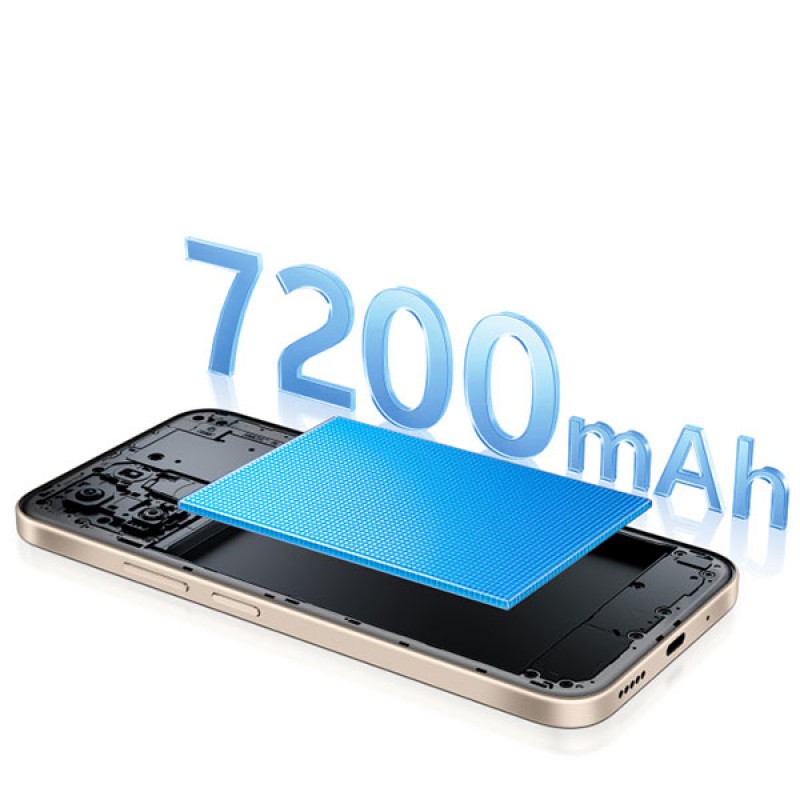 - البطارية الأضخم في فئتها: يأتي الهاتف ببطارية عملاقة سعة 7200 مللي أمبير، وهي الميزة الأقوى التي تضمن لك استخداماً شاقاً لعدة أيام دون الحاجة للشحن المتكرر.