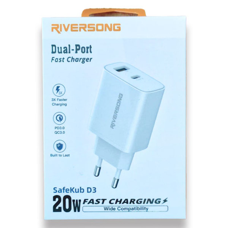 يأتي الشاحن SafeKub D3 AD26 بقدرة 20W مع منفذين USB-C وUSB-A، ويدعم تقنيات Power Delivery وQuick Charge لشحن الهواتف والأجهزة اللوحية بسرعة وكفاءة، مع تصميم مدمج وخفيف مناسب للاستخدام اليومي والسفر.